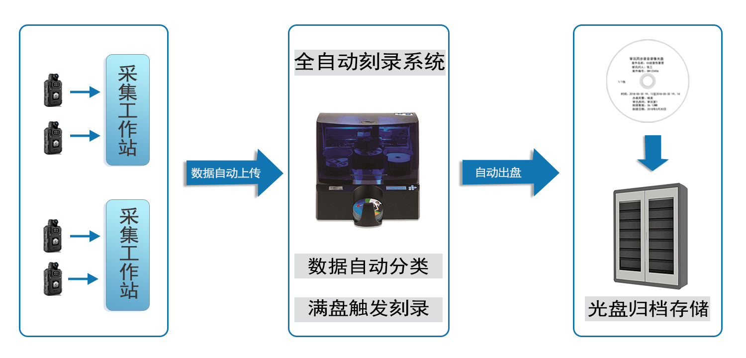 執(zhí)法記錄儀數(shù)據(jù)自動備份光盤刻錄歸檔系統(tǒng)