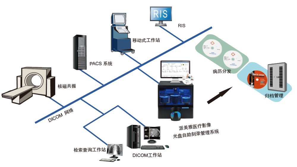 致力于為DICOM 影像數(shù)據(jù)/病案數(shù)據(jù)備份歸檔構(gòu)建安全存儲(chǔ)和安全管理策略,自動(dòng)將DICOM 影像數(shù)據(jù)/病案數(shù)據(jù)離線備份到BD藍(lán)光/DVD/CD光盤中,配置派美雅檔案級(jí)可打印光盤(達(dá)到數(shù)據(jù)長(zhǎng)期保存需求)、派美雅智能光盤管理柜(用于光盤離線智能歸檔管理),助力實(shí)現(xiàn)醫(yī)療海量數(shù)據(jù)的分級(jí)存儲(chǔ),并且支持提供定制軟件開發(fā)服務(wù)。