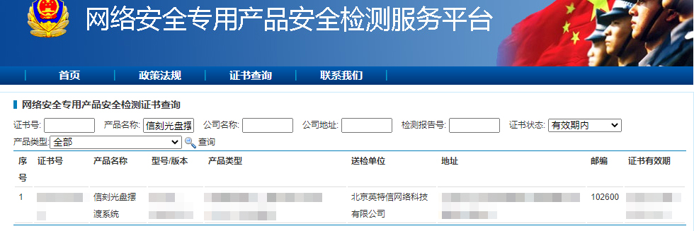 信刻光盤擺渡系統(tǒng)再獲公安部網(wǎng)絡(luò)安全專用產(chǎn)品安全檢測證書!